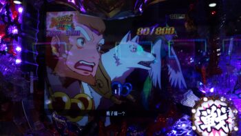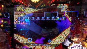 8連目は 「絶対無敵ZONE」 中 5回転、妖鬼VS桃子+負け→巻き戻し+鬼姫アナウンスプレミア→勝利→ 「七」+10R「戦BONUS HYPER」当たり。
