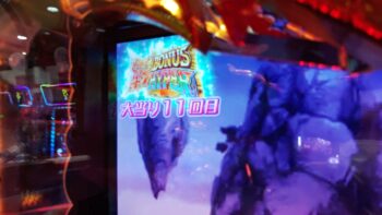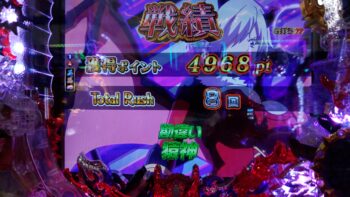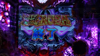 この台なら、下記記事中で触れている、大当たりラウンド後にハンドルから手を放して、全保留を消化して「音量」「光量」の液晶表示が出てから打ち出すというものです。「戦RUSH」中は、保留が2個になったら、あとは「打ちっぱなし」で連チャンさせています。