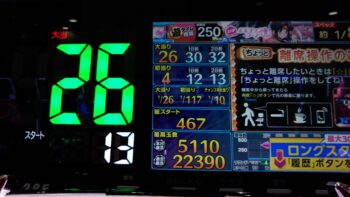 12連したので、やめて他の台に移動しようかと思ったのですが、このホールでは珍しくよく回る台なので、続行しました。