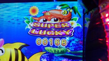 5連目65回転、一発告知「ロング」+「赤」魚群+サムリーチ→「サメ」→「タコ」10R当たり。6連目2回転、5R当たり。