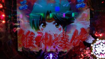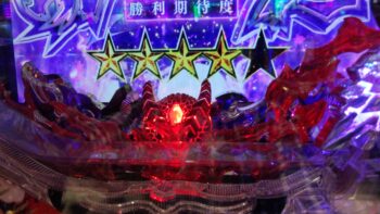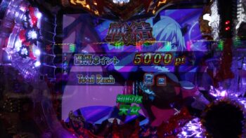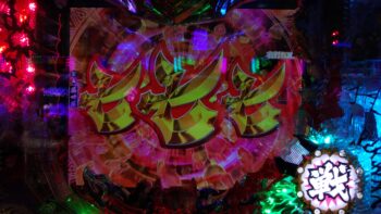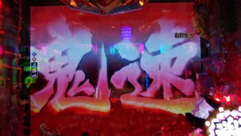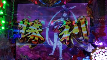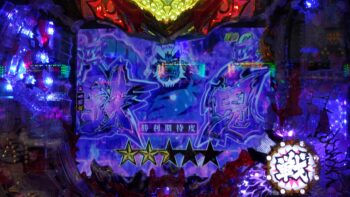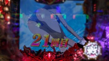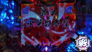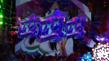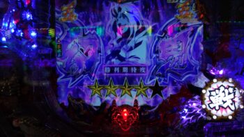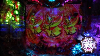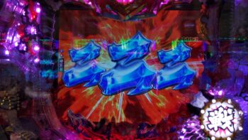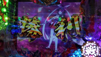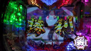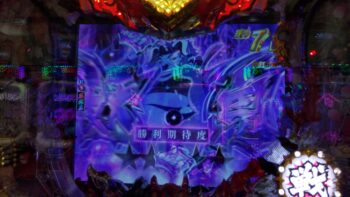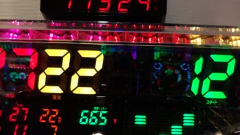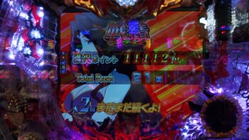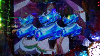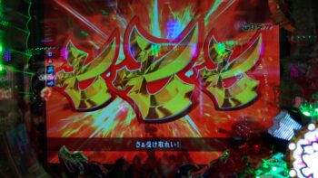 22連目は、チャンスアップも何もなかったので、完全に「RUSH」終了したと思ったのですが、リザルト画面を切り裂く、復活当たりでした。最後の保留の12回転当たりでした。 「七」+10R「戦BONUS HYPER」当たり。