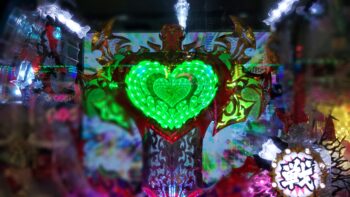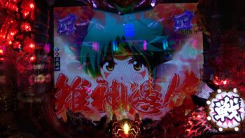 持ち玉投資の202回転、ボタンバイブ先読み+桃保留「ワクワク」+「三神憑依」+「赤」カットイン→「二」4R当たり。