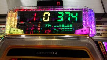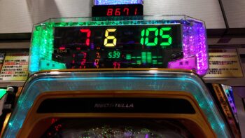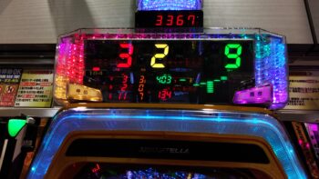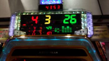 前々日11回、前日2回の台で、初当たり1回目が24回転で 単発スルーか「RUSH」スルーで 、351回転で空いていました。