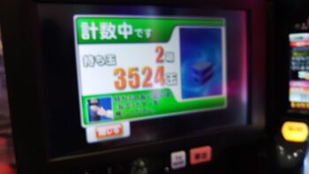 結局、総投資が8.5Kで、回収が合計3524玉の12.4Kで、プラス3.9Kで負けずに帰れました。