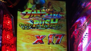 20連目は7回転、AIR VIBE+ウルトラ6兄弟タイトル「金」+「赤」保留+「赤」タイマー+VSゼットン+ウルトラ6兄弟リーチ→「4」3R当たり。 23連目でド派手な演出が来ました。