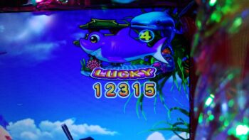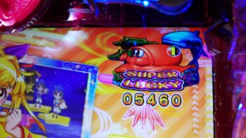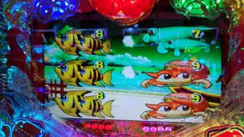 初当たり2回目は、持ち玉がなくなる前の183回転で、ステップアップ「マリン」+「魚群」+「エビ」×「アンコウ」+マリンリーチ→「アンコウ」10R通常当たりでした。もう今日は確変を引けなくなっている台かなと思いました。