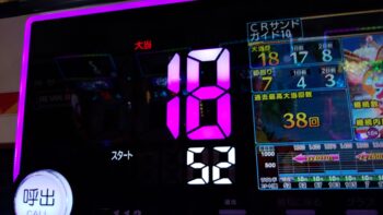 4連目52回転、左枠外「タコ」戻りプレミア→「タコ」10R確変当たりでした。