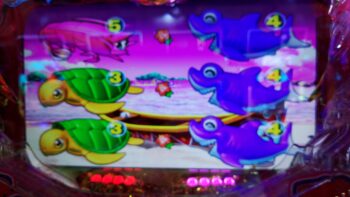 本日は、昨日「P大海物語4スぺシャル」の初当たりが100回転ばかりの好調台で、「お座り一発」、海モード+ビッグバイブ+「ハリセンボン」×「カメ」+マリンリーチ→「カメ」当たりから3連+時短で通常当たり+時短で通常当たり+時短で確変引き戻し3連のストレート8連して、差玉でも11000発出しました。