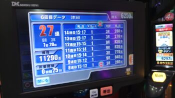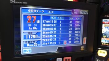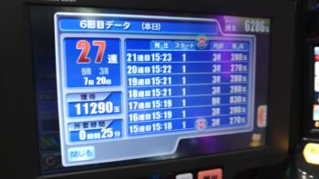 今日は、一撃27連で出玉が13042玉、差玉で10694玉出ました。