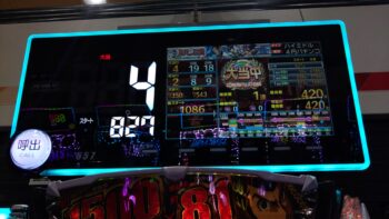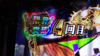4連目は「限界突破CHANCE」中の18回転で一発告知音+デバイスパイブ→10R当たりでした。