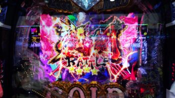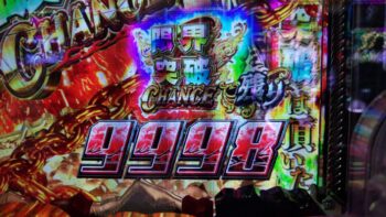 8連目は「限界突破CHANCE」中の49回転で、「激アツ」「Joker」保留+VS Joker→「7」「GOLDEN BIG BONUS」でした。