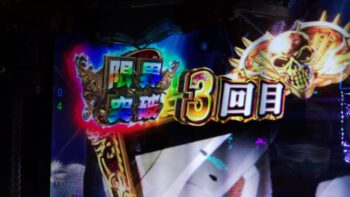 7連目は「限界突破CHANCE」中の12回転、一発告知音+デバイスパイブ→「限界突破」10R当たりでした。