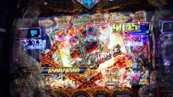 10連目は「限界突破CHANCE」中の18回転、一発告知音+デバイスパイブ「限界突破」10R当たりでした。