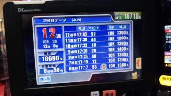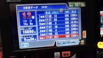 12連して、出玉が18075玉で差玉でも16710玉出ました。