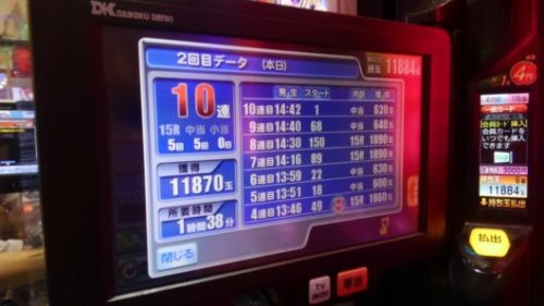 総投資が7Kで回収が11884玉の42.4Kで+35.4Kの大勝ちでした。