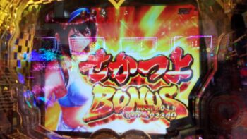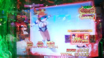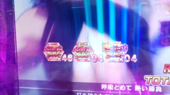 10連目は、2回転をスルーして、バトルに勝利して 「せかつよBONUS」 3R当たりでした。2回転をスルーすると、緊張が走ります。