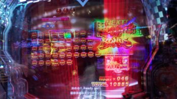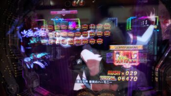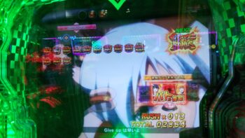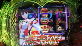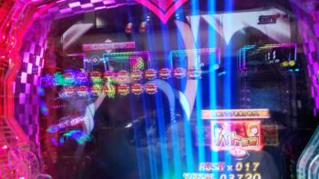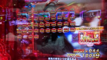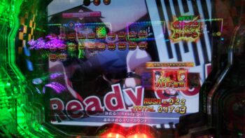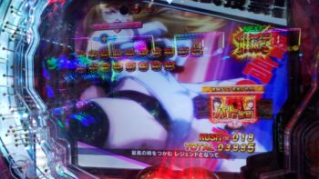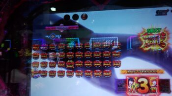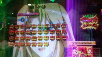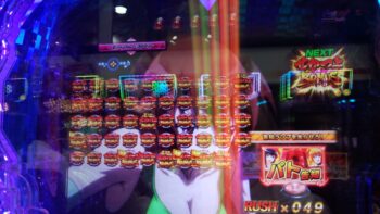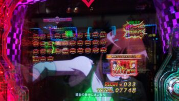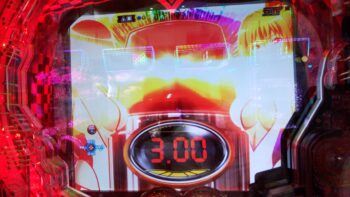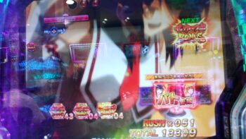 打ち始めは、ブン回りで、なおかつアツいリーチがよくかかっていました。上部ギミックが2段階まで、上がって初めてアツいのが、 サンセイR&Dの台です。