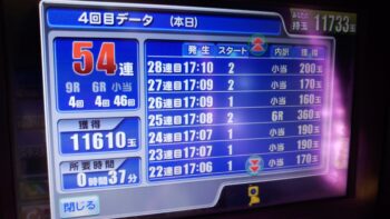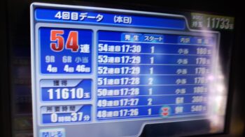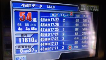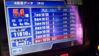 パトランプが光り、鳴りまくりの54連チャンでした。