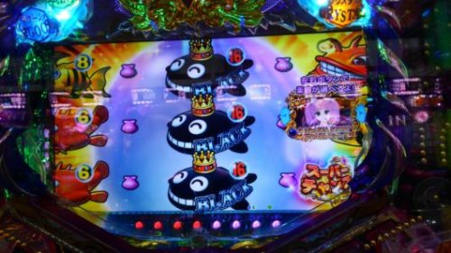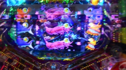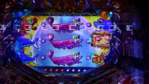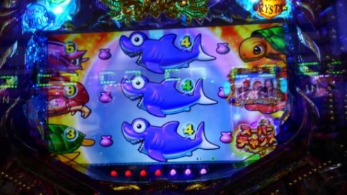 急に元気になったのですが、ここからブラックパールゾーンで当りまくりでした。ST突入のブラックパールゾーンの1回転で「サメ」当たりしました。なくはないのですが、ありえない当たり2度目とします。