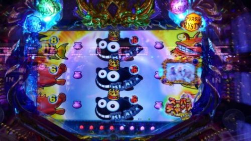 数珠つなぎの12連目、実質2連目はブラックパールゾーンの15回転でボタンプッシュ+「CHANCE」→「カメ」7R当りしました。