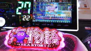 7連目は、「海桜ゾーン」中の22回転→「サメ」3R当たり。