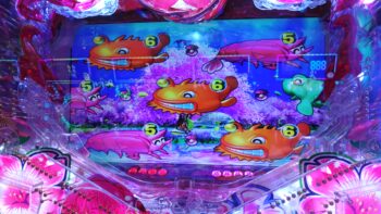 6連目は、「海桜ゾーン」中の1回転→即当たり「ハリセンボン」→「カメ」5R当たり。