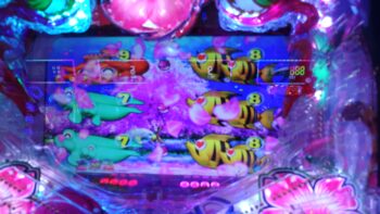 9連目は、「海桜ゾーン」中の11回転→「じんべぇチェンジ」+「エビ」×「アンコウ」+クロスリーチ→「アンコウ」3R当たり。