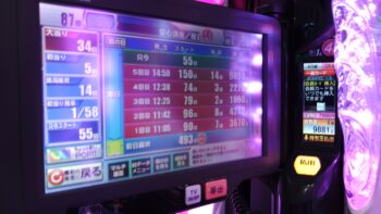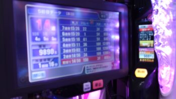 前々日から14回、前日2回で、本日の初当たり1回目が90回転で7連、2回目が96回転で8連、3回目が79回転で2連、4回目が74回転で3連で105回転で空いていた絶好調台でした。履歴が甘デジ以上でした。