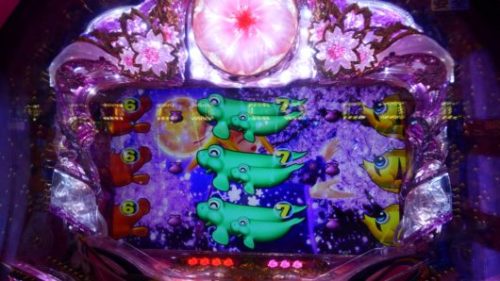 5連目がチャンスタイム中、画面消灯+「夜桜全回転」→「ジュゴン」当り。