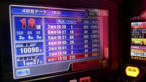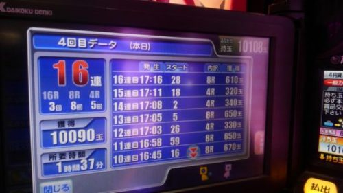 その「想い」に応えてくれるパチンコ台は「神」です。昨日は「CR大海物語4BLACK」で16連したところです。