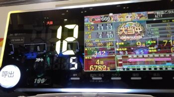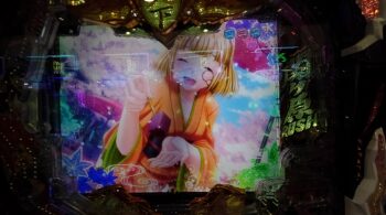 まずは、5回当たりの174回転の台で「お座り一発」、幟連続予告×3+必殺乙女チャンス→「二」3R+電サポ25回当たりしましたが、「突RUSH」に入らずに止め。