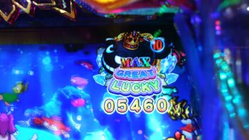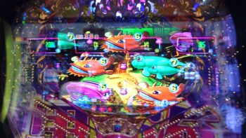 3連目は、いつものSTゾーン中の22回転、トレジャーステージ+「泡」前兆予告×3+クジラッキー+クジラブリー+「魚群」+「エビ」×「アンコウ」+マリンちゃんリーチ→「エビ」「クジラッキー」10R当たり。