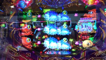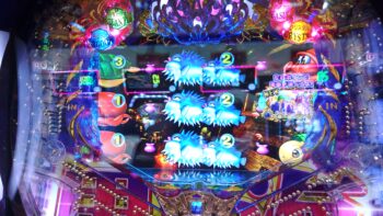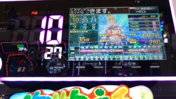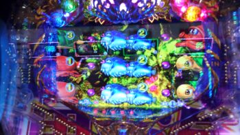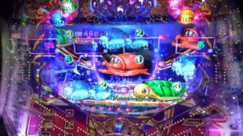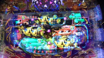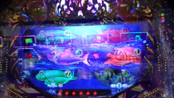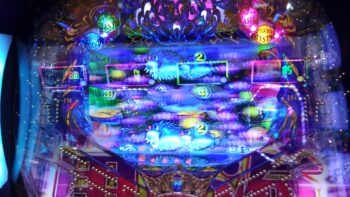 9連目はいつものSTゾーン中の37回転、トレジャーステージ+「泡」前兆予告T×3+「魚群」+「ハリセンボン」+黒潮リーチ➝「ハリセンボン」3R当たりしました。