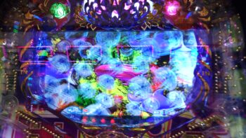 いつものSTゾーン中の17回転、トレジャーステージ+「泡」前兆予告×3+一発告知+「魚群」+右タテ黒潮リーチ+パールフラッシュ→「タコ」5R当たり。
