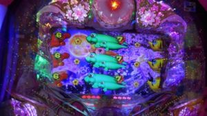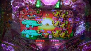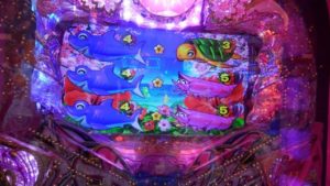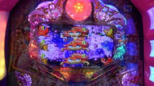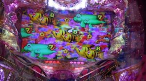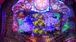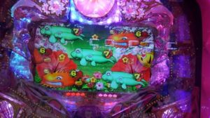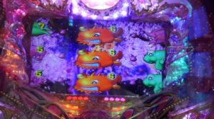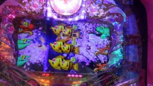 回すこと589回転、ハイビスカスモードで「ハイビスカス点滅」+「ハイビスカスSP」→「アンコウ」→「ジュゴン」当りで6連チャンでした。