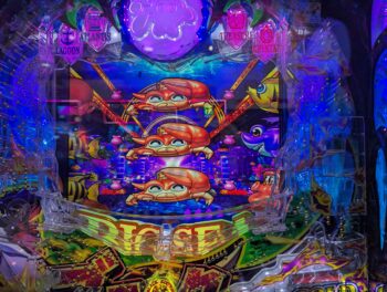 7連目はクリスタルステージ+チャンス目前兆予告×2+クリスタルリーチ+連打ボタン「ビッグプレミア」+パールフラッシュ+「サメ」×「エビ」+いかずちリーチ→「カニ」→「クジラッキー」10R当たり。