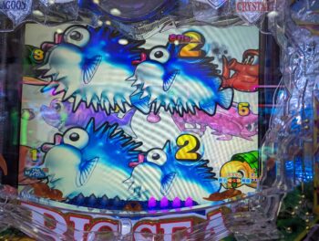 8連目はブラックパール+イカ+「ハリセンボン」テンパイ+ノーマルリーチ➝「ハリセンボン」3R当たりしました。