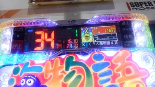 次は、「大海物語4Withアグネスラム119Ver.(遊デジ)」の本日30回当りのシマの1番目の台に座りました。
