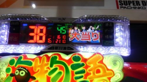 タイトルの出来事がこの時です。遊デジの割に出玉もよく出たので、上皿の玉を落として、カードも引き抜いて保留を見守っていると最後の保留45回転目に「ウリンチャンス」が発生しました。