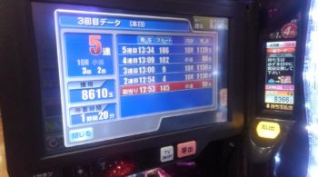 5連目は「暴走モード」で186回転ハマって「4」当たり