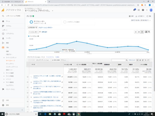 2018年9月でページビュー数が2,800PV/日で106,000PV/月まで微増しましたが、ピーク時と比べると半減してしまいました。