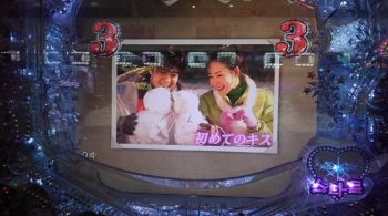 3連目は25回転で4R確変当たりでした。「ソ・ソ・3」チャンス目+デートチャンス+AIR VIBE+雪だるまリーチ+ミニョンカットイン「レインボー」→「ナ」当たり。