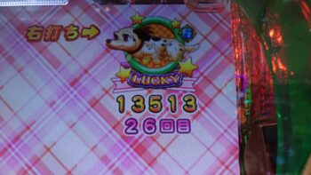26連目は2回転、金猫群+一発告知+チワワリーチ→「6」ダルメシアン4R当たり。