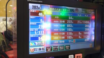 前者には悪いのですが、693回転ハマって単発スルーの恩恵が筆者に来ました。でも4R当たりだったので、本当のところは分かりませんでした。