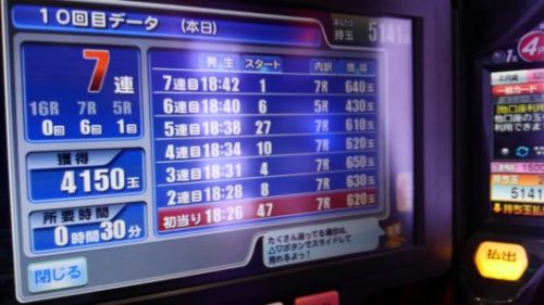 面倒くさい方には、夕方以降で30回以上当たっている台が、あれば初当りも引けて連チャンする可能性も高いです。