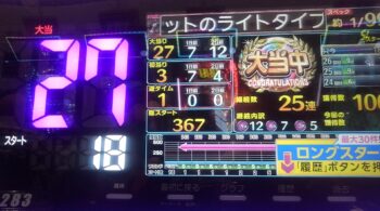 27連目が、2回転で頂上決戦BONUS「FULL CHARGE」3R当たり。