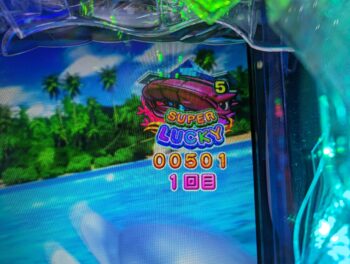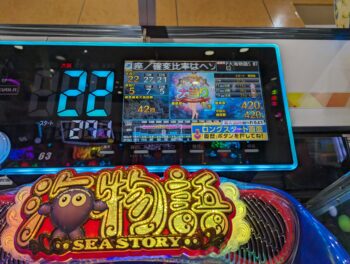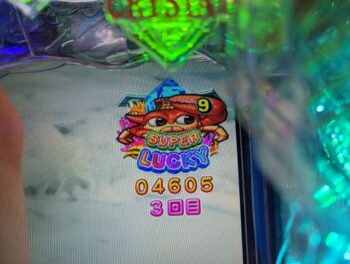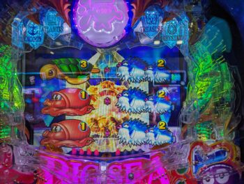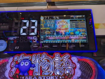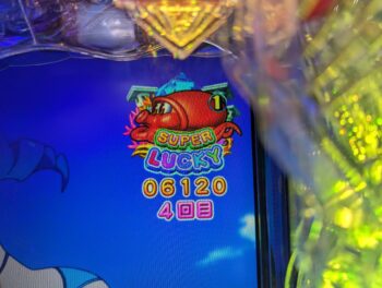 回らない台を頑張って回したのですが、5K使った260回転ほどで、「デモ出し」がてらにトイレに帰ってきて回した投資6.5Kの271回転(1K16)、「泡」連続予告なし+「サメ」×「エビ」+魚群+マリンビッグプレミア➝「エビ」10R確変当たりしました。