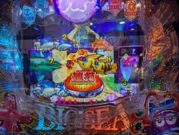 連チャンする「P大海物語5」は、確変中に通常図柄を外し、確変図柄を外しませんが、レバ確は外すのも同じようです。