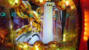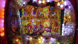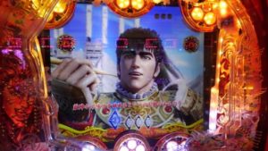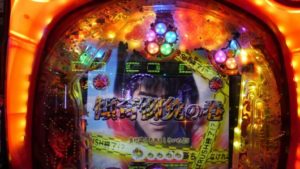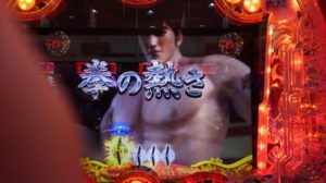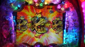 240回転ほどで、慶次「カットイン」+「慶次ムービー予告」+「青」→「金」保留+骨「タイマー」+疑似連×3+SPロングリーチ「拳の熱さ」→外れ。滅多に出ない「金」保留を外してくれました。
