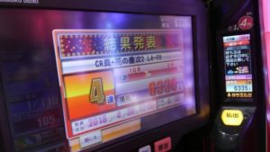本日の初当り、1回目、234回転で単発。161回転で単発。441回転で4連。206回転で3連の後、148回転の台でした。そこそこ安定している台でした。